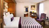 Chambre entièrement équipée, de la climatisation, d'un lit double pour 2 personnes occupation maximale, salle de bain avec LED douche hydro, coffre-fort privé gratuit, télévision à écran plat LED et téléphone privé, chambre non fumeur. Supplément balcon de 29 € par nuit. Mini-bar avec boissons et le champagne (avec supplément). Frais d'enregistrement de 10€ par nuit en supplement. Taxes et services inclus.